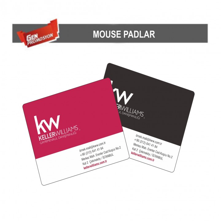 Keller Williams MousepadÜrün Kodu : KW-Mousepad Ürün Adeti: 1000 adet Ürün Fiyatı : Fiyat İsteyiniz Özellikler : 22x18cm - 18,5x18,5cm