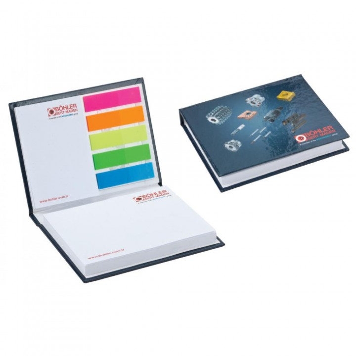 • Sert kapak yapışkanlı notluk • 10,5 x 8,5cm • 2mm muk. 170gr kuşe taslama • 25 + 50 yp. yapışkanlı notluk • 5’li plastik ayraç