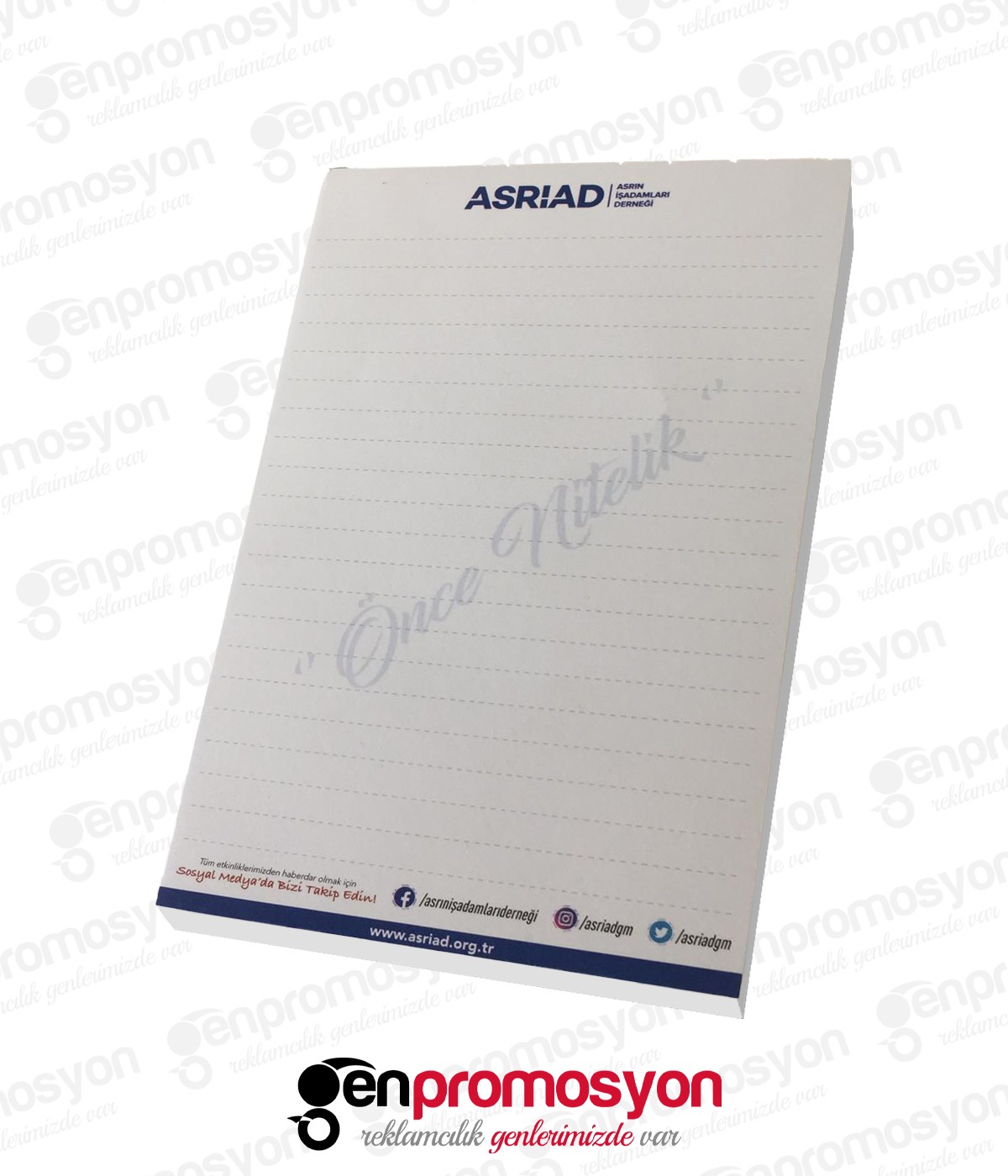 Ebat: A4,A5,A6 Sayfa: 50 Yapraklı Baskı: Tek Yön İç Kağıt: 80 Gr 1. Hamur Farklı ebat ve özelliklerde imalat yapılabilmektedir.